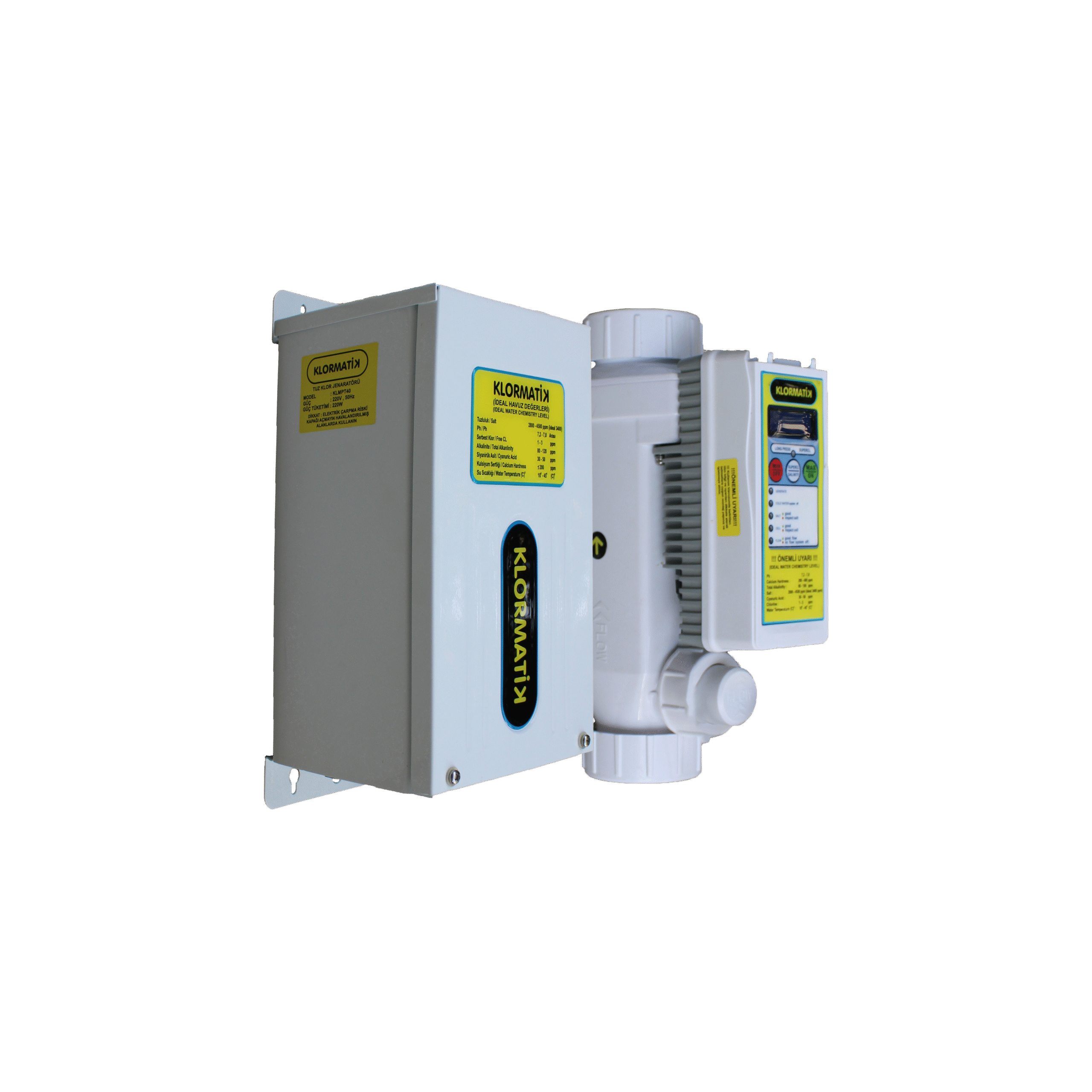 Tuzdan elektroliz yöntemiyle kendi klorunu üreten, havuz suyunu otomatik olarak dezenfekte eden akıllı klorlama sistemi.